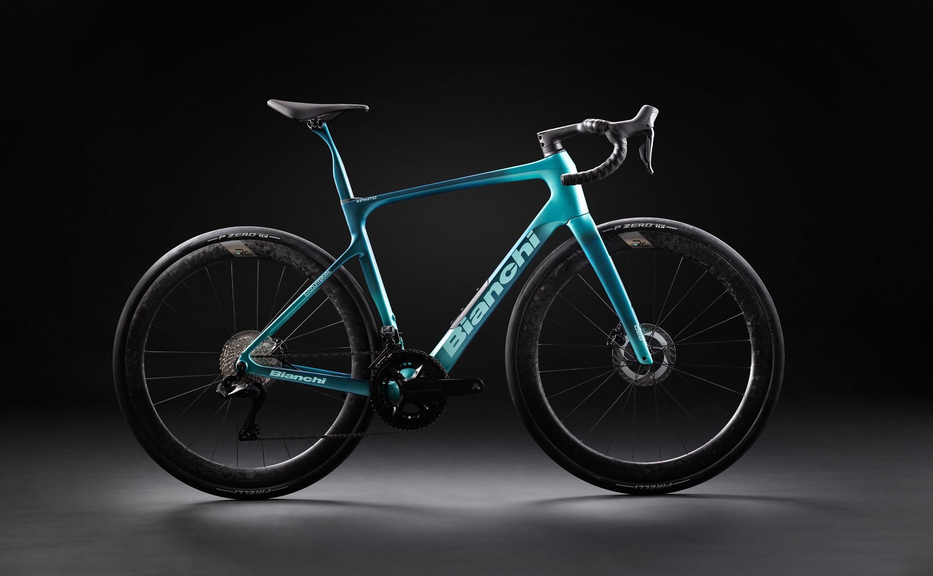 Bianchi Infinito Pro, Flat mount 140/160, PressFit 86.5x41 mm, Thru Axle 12x142 mm, Sram UDH compatible, Max chainring compatibility: 46-54T, Internal cable routing, Tire clearance: ETRTO 622-40 sizes 47-50-53-55-57-59-61